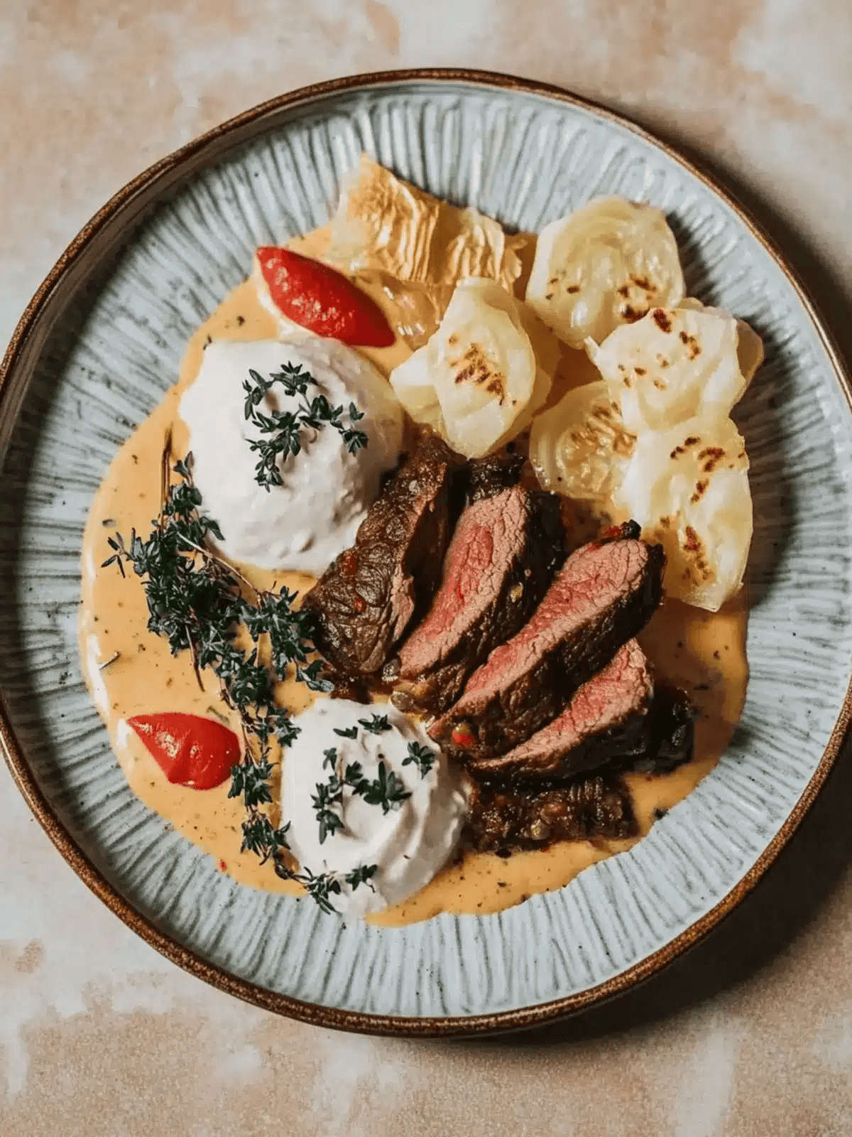 To serve, slice the beef and arrange it on a plate, then generously ladle the creamy sauce over the top. Garnishing with freshly chopped parsley adds a touch of color and freshness—completing the dish both visually and flavor-wise.